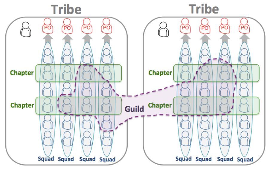 - Guild는 Tribe를 넘나드는 공통의 관심 분야를 가진 사람들의 커뮤니티라고 할 수 있다. (예를 들어, 웹 기술 길드, 테스터 길드, 애자일 코치 길드 등)