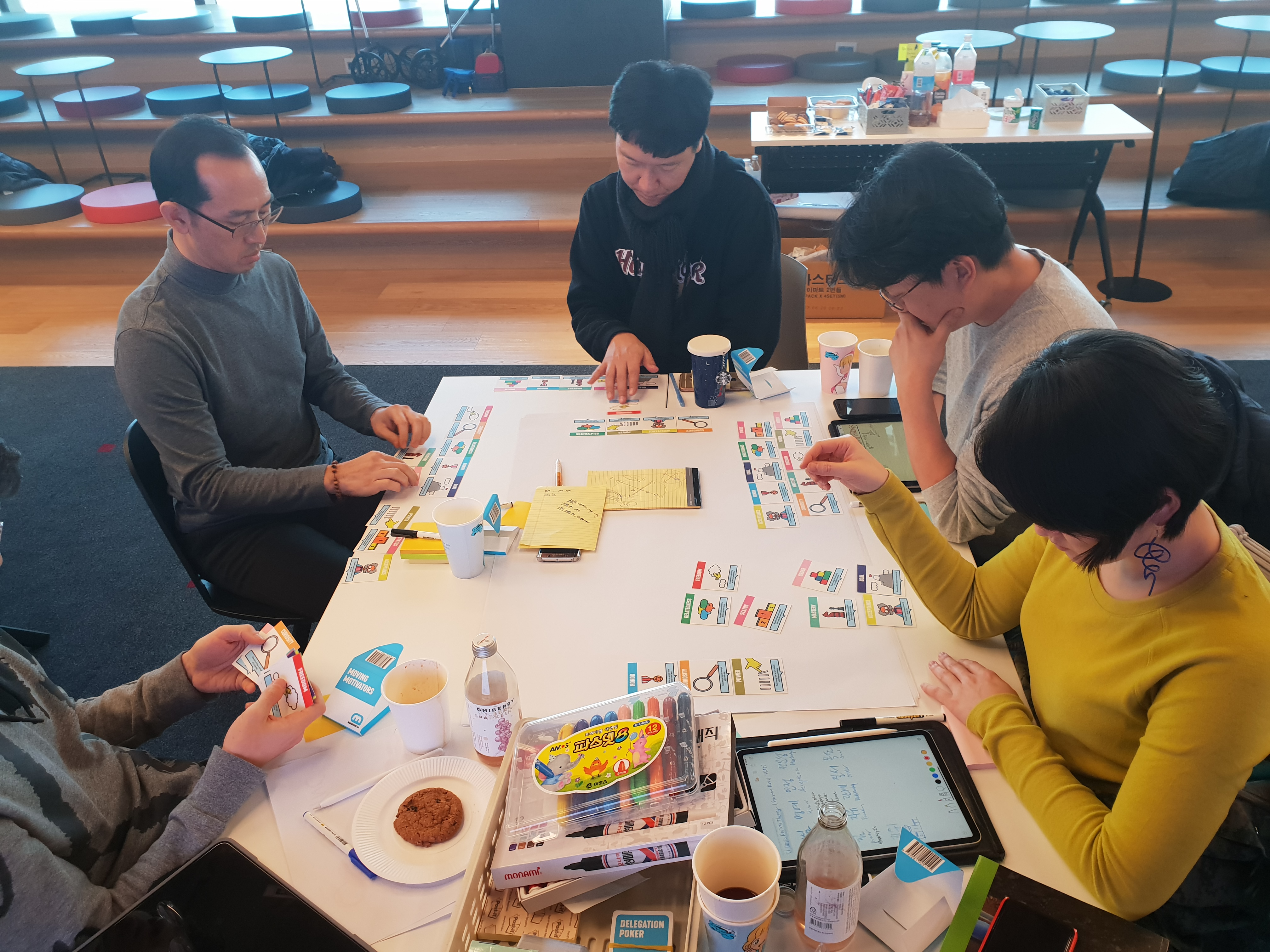 무빙 모티베이터 워크숍 시작 퍼스널 맵 공유 퍼스널 맵 공유 팀별 토론 마티에 대한 논의 마티 논의 결과 델리게이션 포커 해피니스 도어 임프로브 카드 팀 역량 매트릭스 메들러 게임 셀레브레이션 그리드 최종 회고 #1 최종 회고 #2